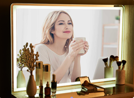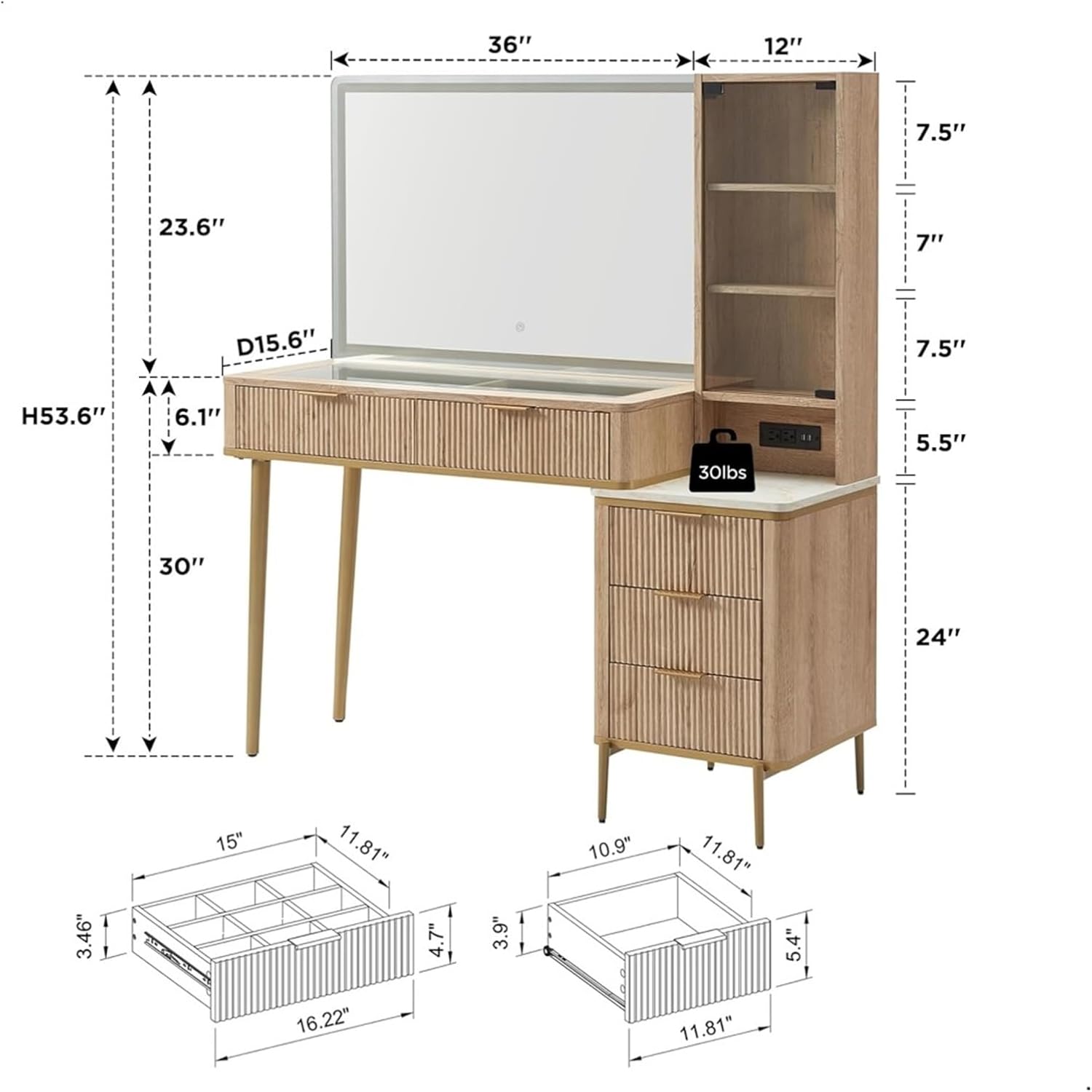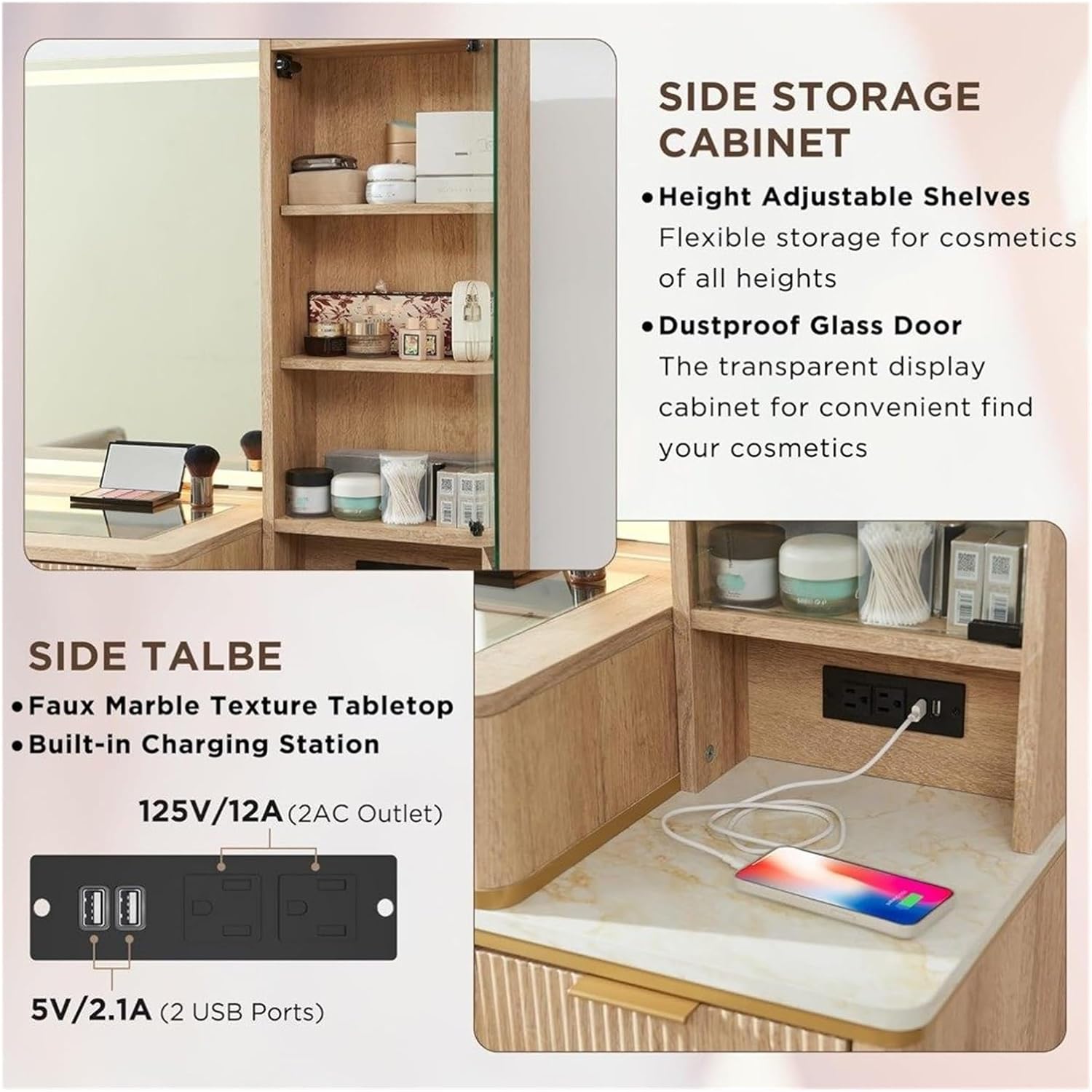 I’m in love with this vanity! The sleek design featuring a marble-look top and gold accents is absolutely gorgeous. The lighted mirror is both bright and adjustable, making it ideal for any time of day. I’m also impressed by the ample storage—it keeps all my beauty products neatly organized. I’m obsessed! 😍